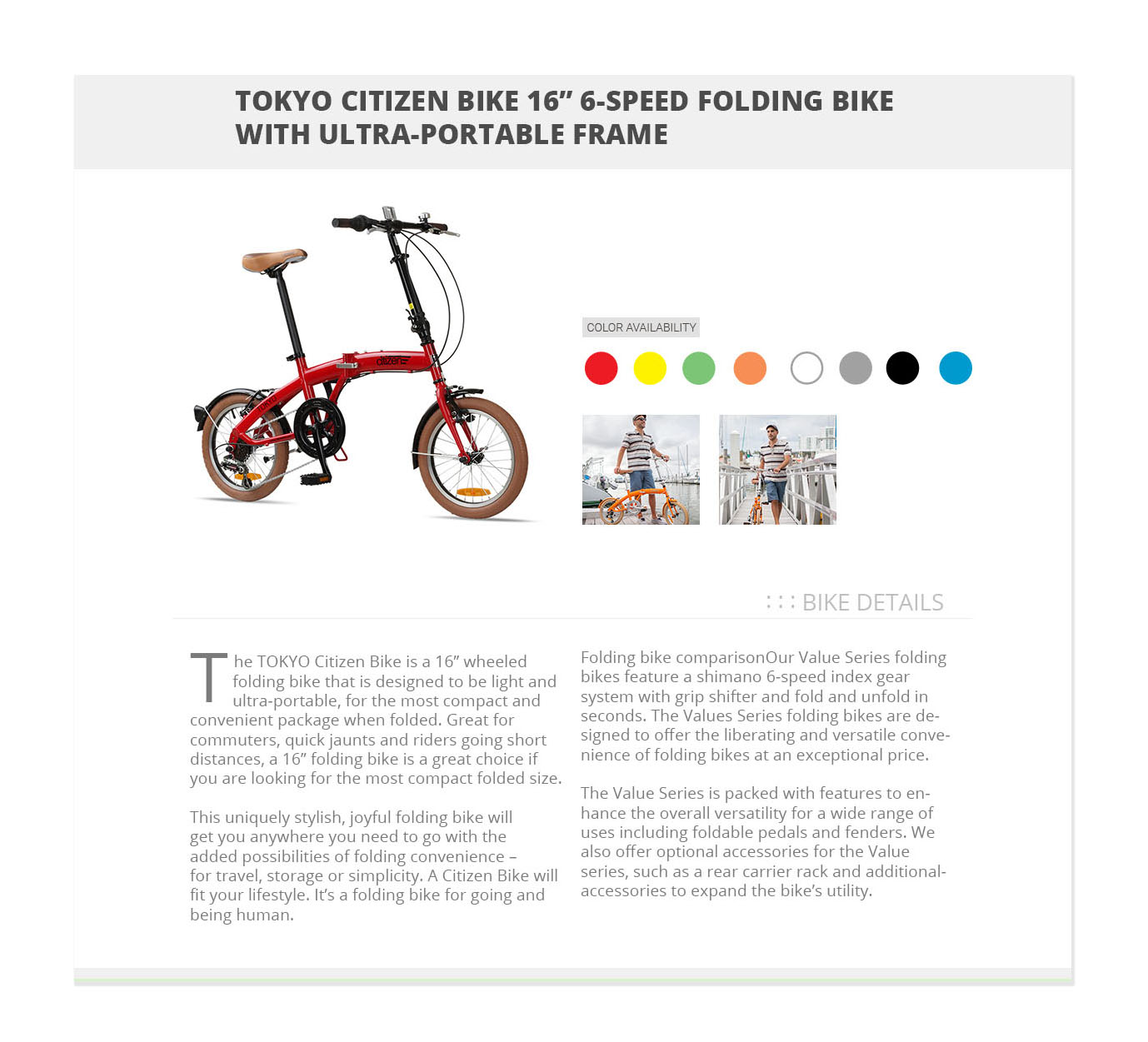 This is an promo site design for Citizen Folding Bike.The purpose for this project to show modernist lifestyle. Our design included bright color and outdoor product imagery to support the urban outdoor. Responsiveness is also ensure on all size browser.